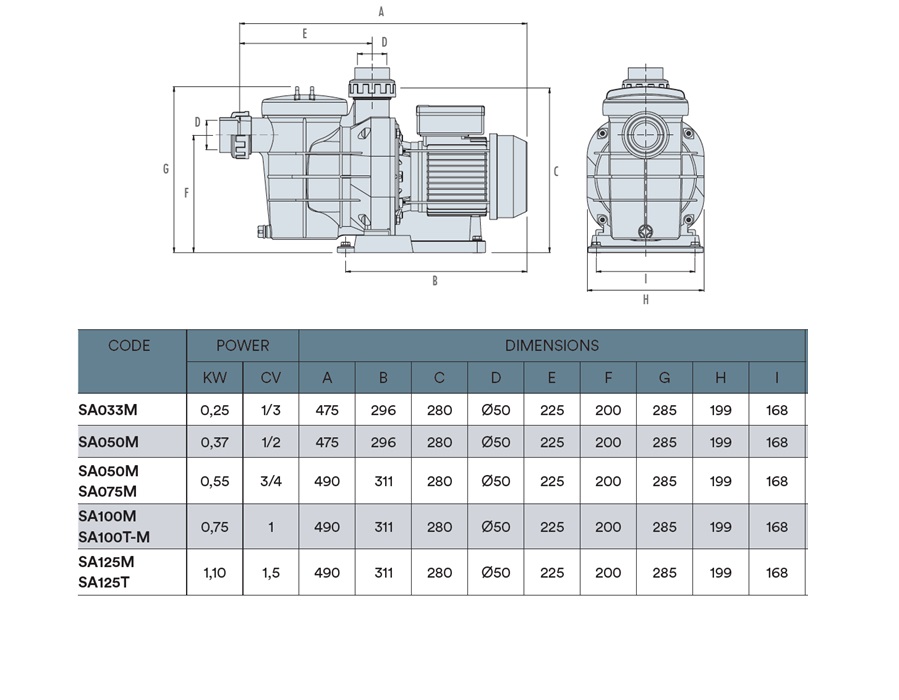 - Σώμα αντλίας από πολυπροπυλένιο ενισχυμένο με fiberglass, ανθεκτικό στα χημικά της πισίνας, με εγγύηση μεγάλης διάρκειας.