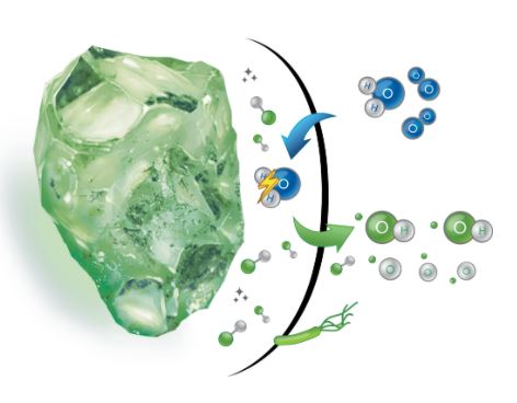 Όταν έρχεται σε επαφή με νερό που ρέει μέσω του φίλτρου, σχηματίζεται μια μικρή ποσότητα ελεύθερων ριζών (Ο και ΟΗ) στην επιφάνεια των κόκκων. Χάρη στο ισχυρό δυναμικό οξείδωσης, οι ελεύθερες ρίζες προστατεύουν την AFM® από τον αποικισμό από βακτήρια και αποτρέπουν πλήρως το σχηματισμό βιοφίλμ