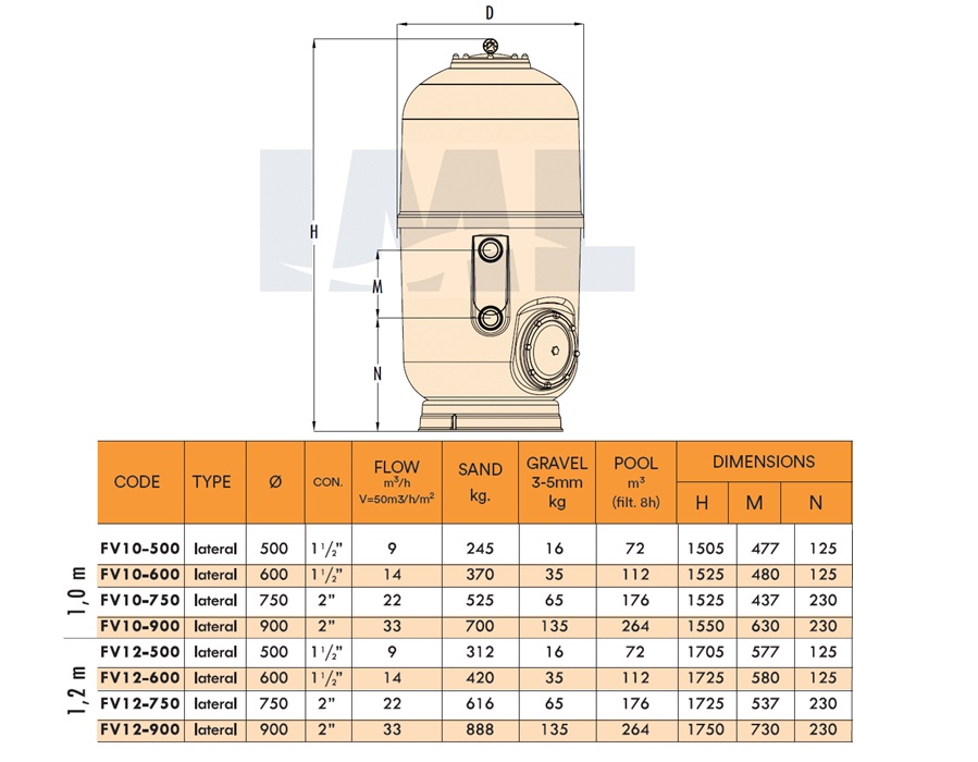 - Ø200 mm καπάκι για εκκένωση άμμου στο κάτω μέρος του φίλτρου.