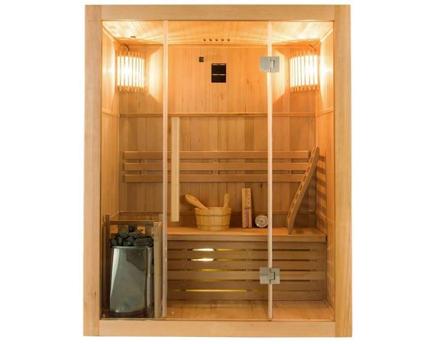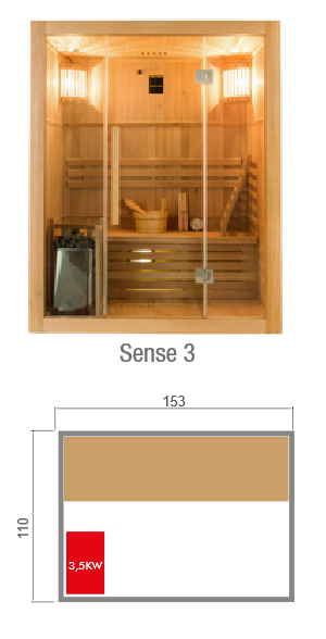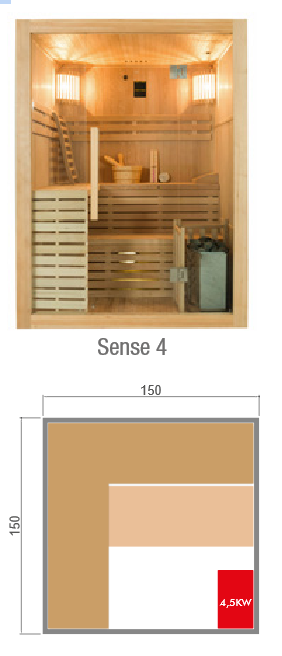 Η Sense συνδυάζει όλα τα συστατικά που συμβάλλουν στην απελευθέρωση. Ελευθερώστε το μυαλό και χαλαρώστε το σώμα. Ο φωτισμός στις πάνω γωνίες της καμπίνας και κάτω από τον πάγκο δημιουργεί μια χαλαρωτική ατμόσφαιρα, βρείτε την ιδανική θέση για να ηρεμήσει το σώμα και το μυαλό σε αυτή την καναδική παραδοσιακή σάουνα από ξύλο ελάτης. Η σάουνα ατμού μας φέρνει πίσω στις παραδόσεις ευεξίας που είναι πιο βαθιά ριζωμένες στις σκανδιναβικές χώρες. Στην πραγματικότητα παρέχει ξηρή θερμότητα, ο όρος “ατμός” αναφέρεται στον πραγματικό ατμό που δημιουργείται όταν προστίθεται νερό στις καυτές πέτρες στη σόμπα. Αυτό αυξάνεται γρήγορα για να φτάσει γενικά τους 80 °C. Το σώμα που έχει ζεσταθεί απελευθερώνει όλες τις εντάσεις της ημέρας και χαλαρώνει σχεδόν αμέσως. Ως πραγματική πρόοδος στην αρχιτεκτονική της σάουνας του σπιτιού, η ξύλινη δομή του Sense στέκεται σε τρεις τοίχους για να ανοίξει τη θέση της για μια πανοραμική πρόσοψη με τζάμια, πρόσοψη που προσφέρει πανοραμική θέα, πραγματικό άνοιγμα στο περιβάλλον. Σχεδιασμένο από σκληρυμένο γυαλί για να αντέχει τη θερμότητα της σάουνας ατμού, αυτή η γυάλινη πρόσοψη φέρνει μια σύγχρονη πινελιά στο παραδοσιακό στυλ της καμπίνας από μασίφ έλατο.