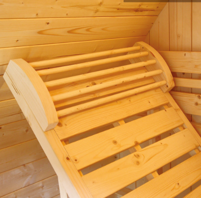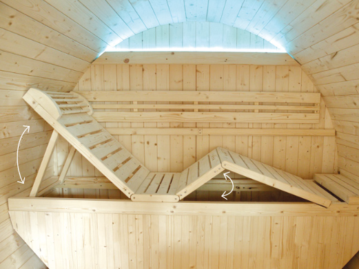 Η καμπίνα Gaïa Bella είναι εξοπλισμένη με δύο πάγκους σε δύο επίπεδα. Απολαύστε πλήρως τη χαλαρωτική σας στιγμή στον αναδιπλούμενο επάνω πάγκο, η εργονομία του οποίου έχει μελετηθεί προσεκτικά μέχρι το ενσωματωμένο προσκέφαλο. Αυτή η καμπίνα και η σκανδιναβική γοητεία της σε ανοιχτόχρωμο ξύλο ελάτης με περιορισμένες διαστάσεις θα αναδείξουν τον κήπο σας. Οι γυάλινες επιφάνειές του καλυμμένες με περσίδες με περσίδες προσθέτουν μια γοητεία στο στρογγυλό σχήμα αυτής της εξωτερικής σάουνας.