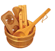 Πάγκος δύο επιπέδων Αναδιπλούμενος επάνω πάγκος + αφαιρούμενο προσκέφαλοΣυμπεριλαμβάνεται κάδος, κουτάλα, κλεψύδρα, θερμόμετρο, υγρόμετρο