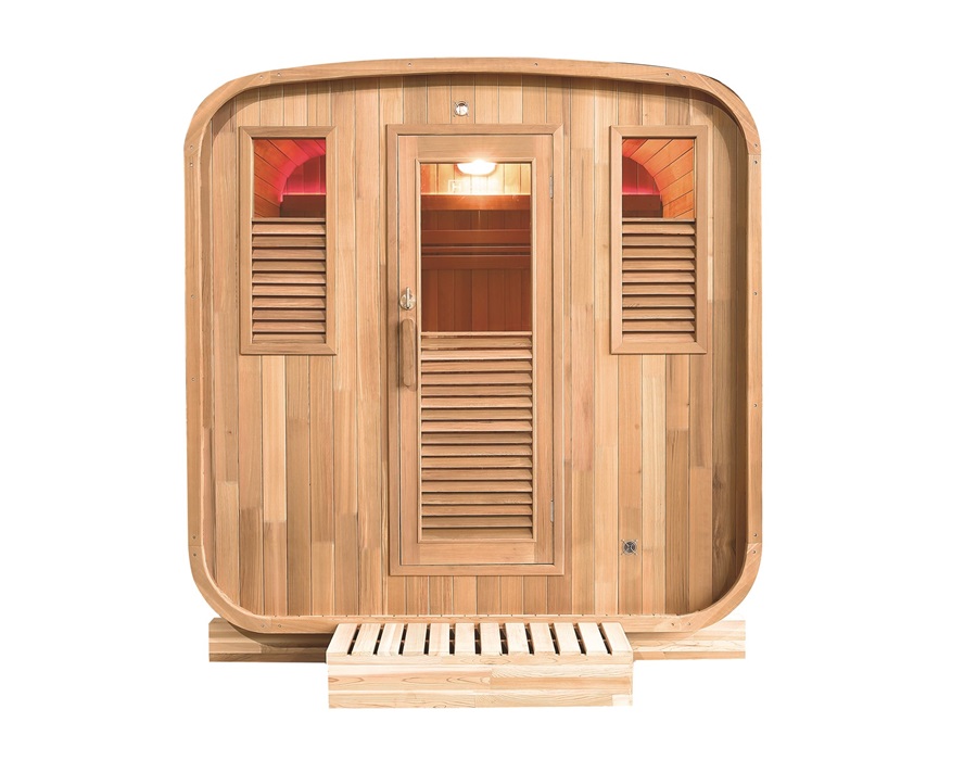 τετράγωνο σχήμα. Σχεδιασμένο για 6 άτομα, με πάγκο δύο επιπέδων. Ο πάνω πάγκος έχει φτιαχτεί για πλήρη χαλάρωση με αναδιπλούμενη πλάτη με άνετο προσκέφαλο, ένα σετ LED που διαχέουν 7 χρώματα και παρέχουν όλα τα οφέλη της χρωματοθεραπείας. Είναι κατασκευασμένη από καναδικό έλατο που συνδυάζει την κομψότητα της με ιδιότητες που πολλαπλασιάζουν τα οφέλη και τις απολαύσεις των συνεδριών σας, χρόνο με το χρόνο. Το ξύλο ελάτης παρουσιάζει φυσική ομορφιά και απαλότητα που συνδυάζονται με την ικανότητά του να αντιστέκεται στις διακυμάνσεις της θερμοκρασίας, καθώς και με μοναδικές αντιμυκητιακές και αντιβακτηριδιακές ιδιότητες.